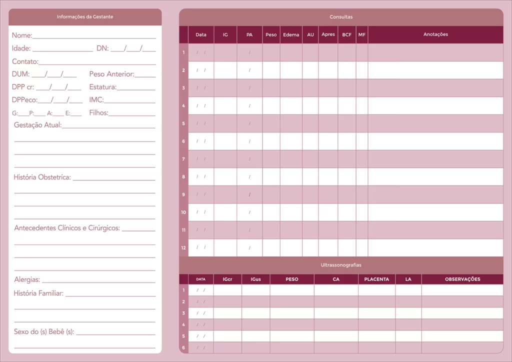 A caderneta de gestante Personalizado serve para o profissional de saúde anotar todos os seus dados após consultas, exames e vacinas. Será uma forma de acompanhar todos os processos durante a gravidez de modo mais humanizado.